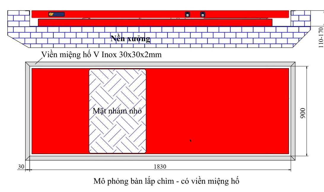 2. Chuẩn bị hố đặt bàn nâng với kích thước như sau: