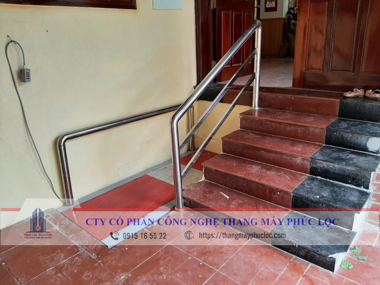 Hướng dẫn lắp đặt bàn nâng cho người khuyết tật khi đi lên bậc cầu thang theo các bước sau :