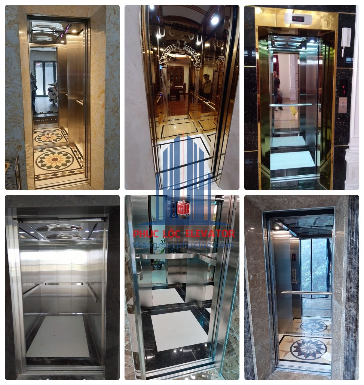 Có 2 loại thang máy được sử dụng nhiều cho gia đình: thang máy kiểu dáng mini (vật liệu inox sáng, nhiều màu), thang máy kính (nhìn xuyên, rất đẹp).