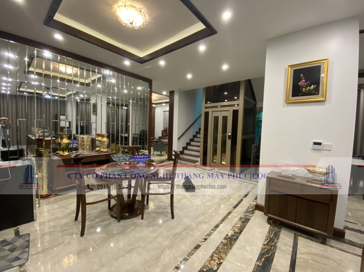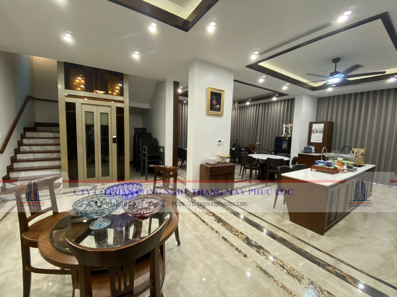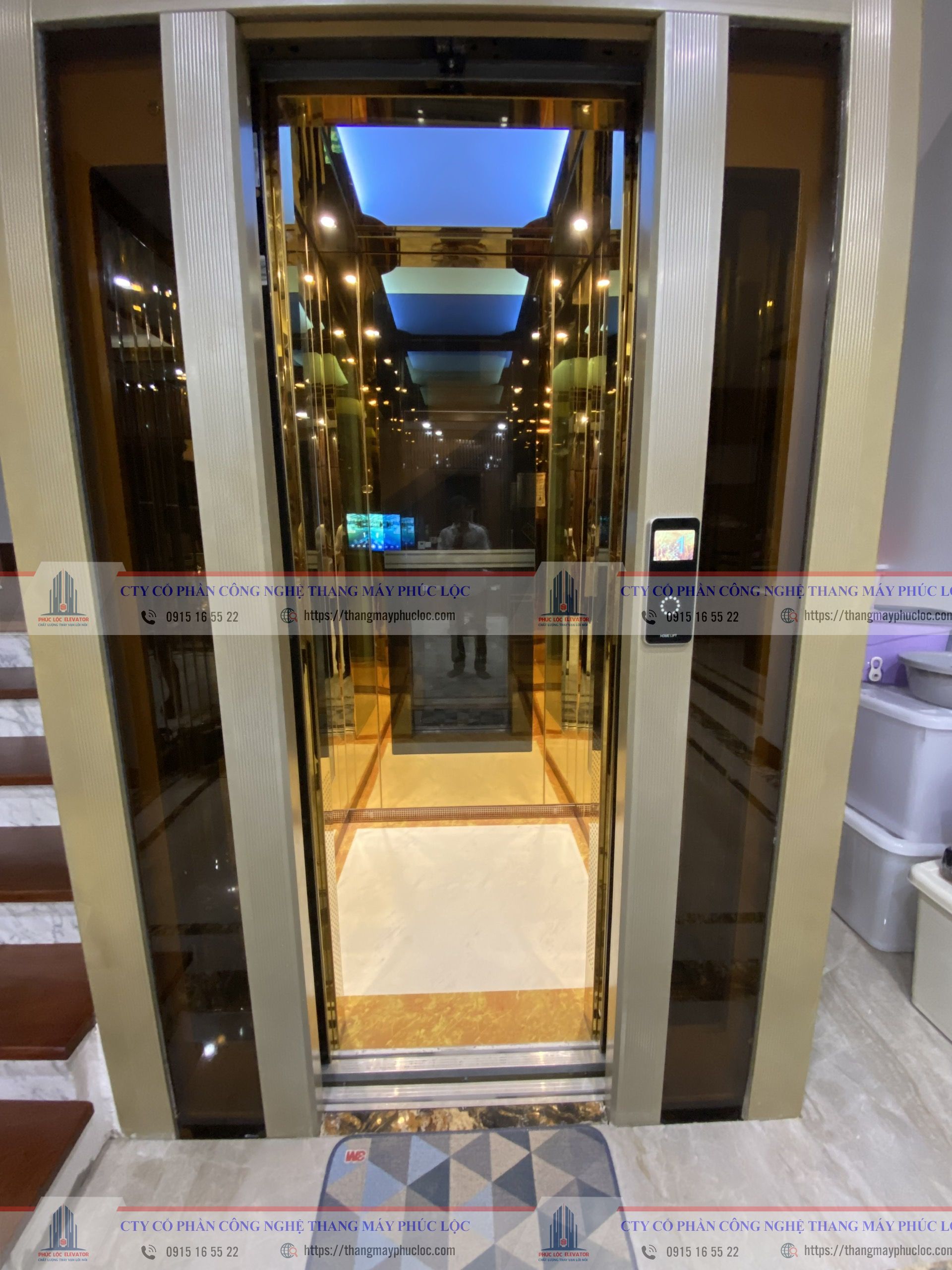 ✅ Bàn giao thang máy gia đình Fuji nhập khẩu sử dụng inox vàng, khung nhôm hợp kim, kính cường lực sang trọng.