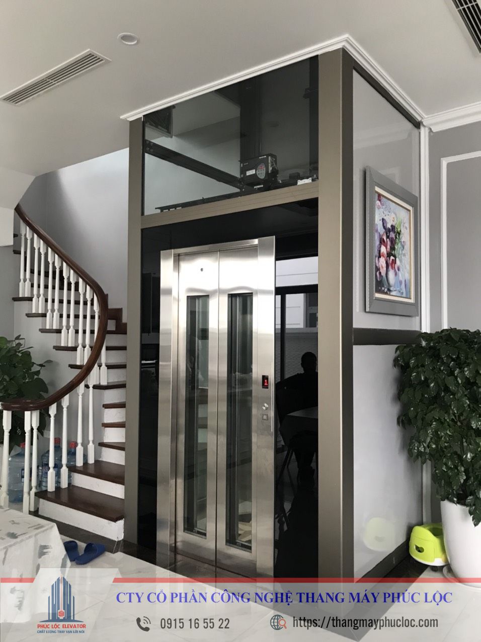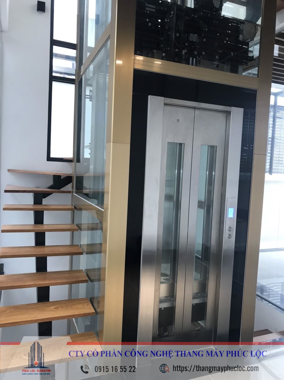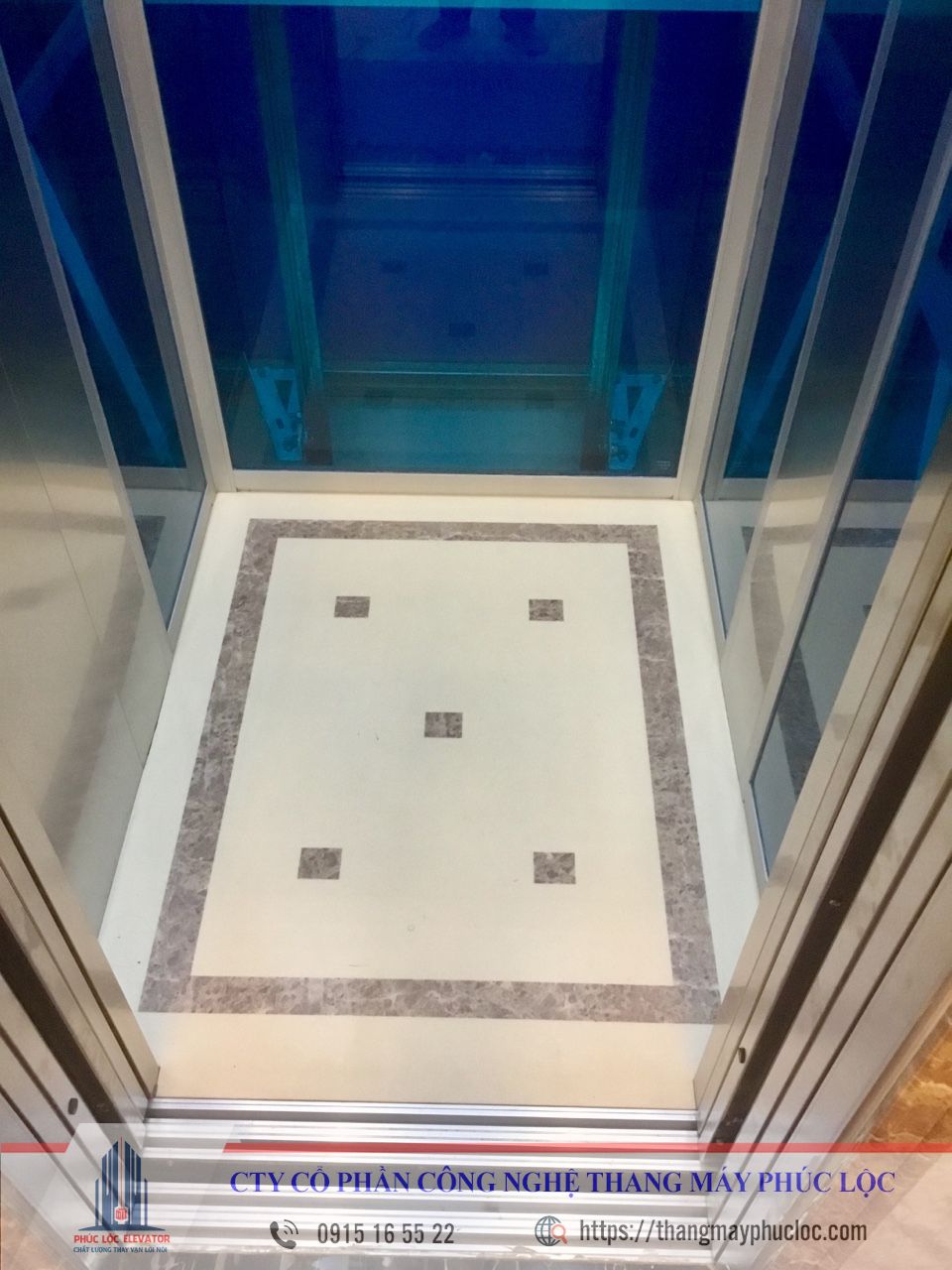 - Phần bao che mặt thang là ẩn đi mặt rail, đối trọng và cáp tải vì tất cả các bộ phận này đều nằm gọn bên góc bên phải hoặc bên trai thang máy.