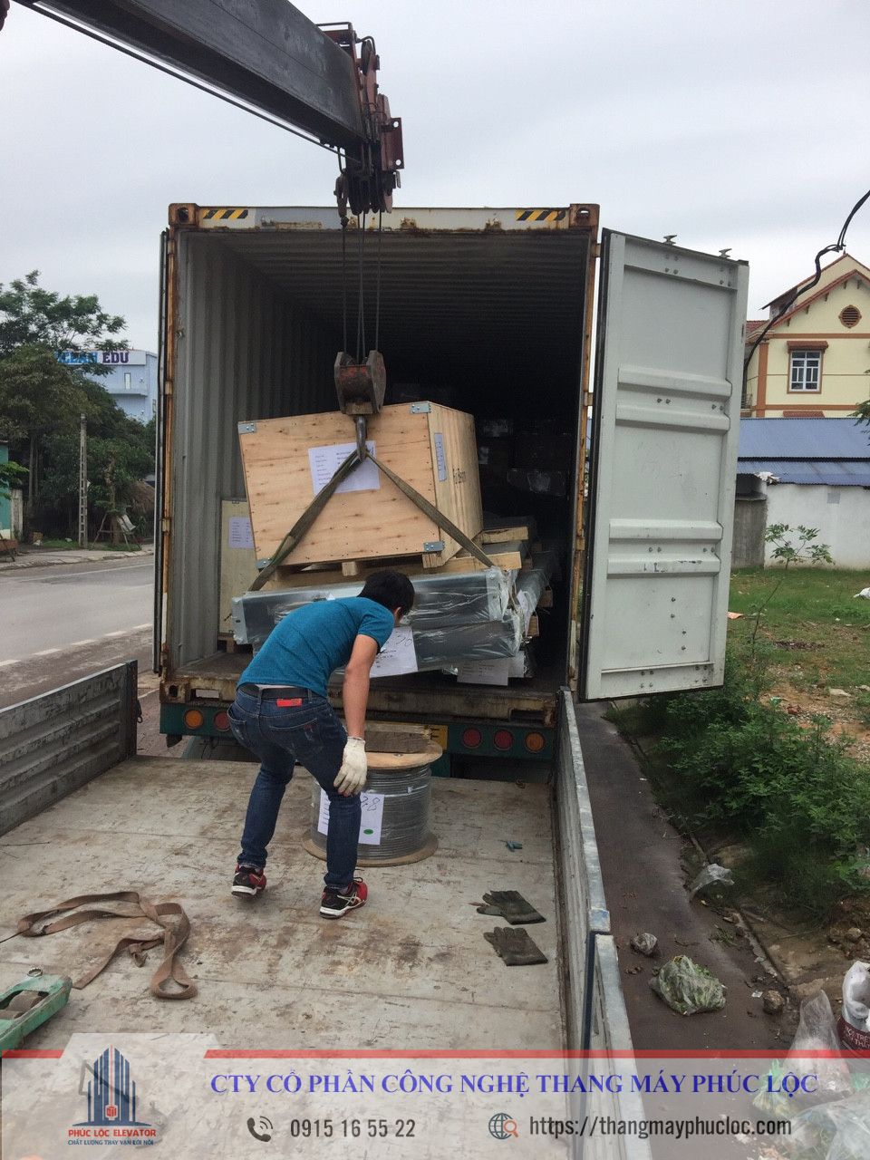 1. XUỐNG HÀNG CHUẨN BỊ LẮP ĐẶT THANG MÁY