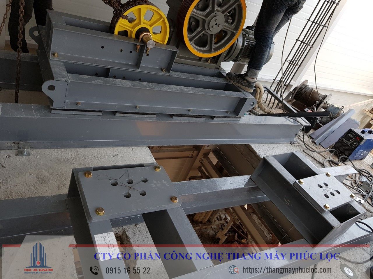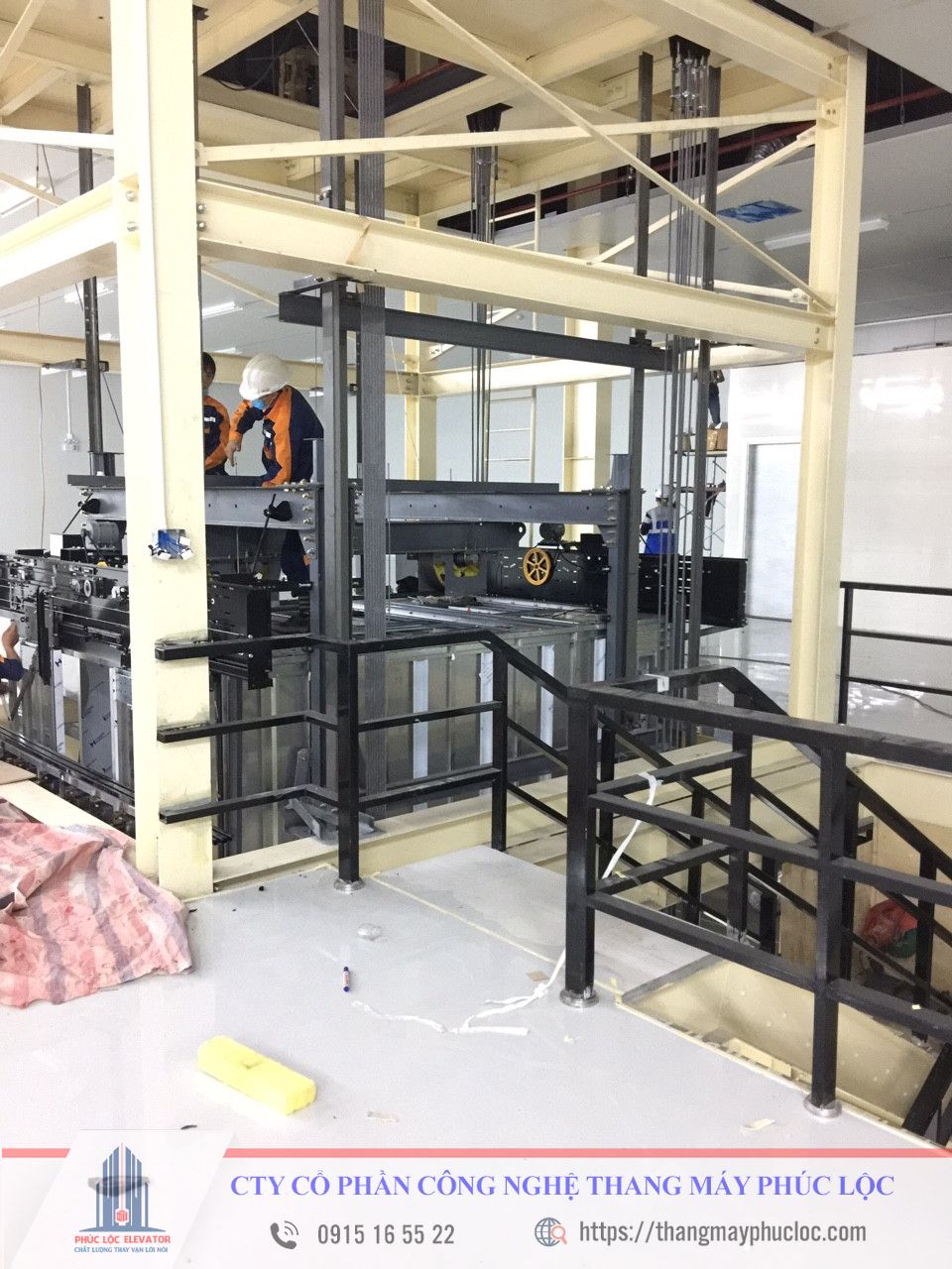 2.THI CÔNG LẮP ĐẶT RAY DẪN HƯỚNG KHUNG CABIN THANG MÁY