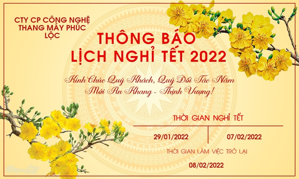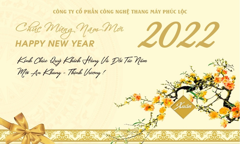 Nhân dịp năm mới 2022, Công ty cổ phần công nghệ thang máy Phúc Lộc xin kính chúc Quý Khách hàng, Quý đối tác cùng gia đình một năm mới AN KHANG, THỊNH VƯƠNG!